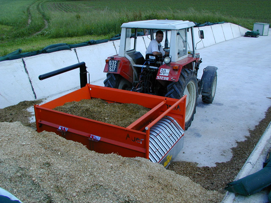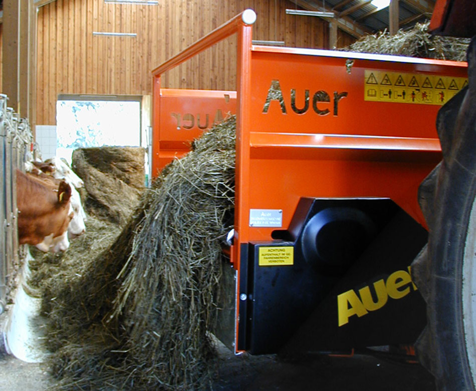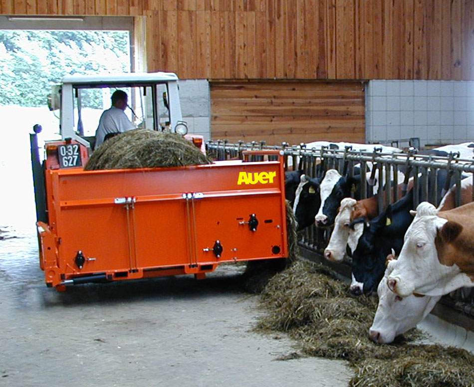 Der Ballenabwickler von Auer übernimmt das schnelle und saubere Auflösen bzw. Abrollen von Siloballen, Heuballen und Strohballen – optimal dosiert – ohne sich anstrengen zu müssen. Die geschlossene Bauweise mit Kratzboden verhindert Futterverlust. Die Länge des Futters, ob lang/ kurz, geschnitten/ ungeschnitten oder geforen, wie auch die Wickelrichtung des Ballens, spielen beim Auer System keine Rolle. Das Futter wird gleichmäßig und vollständig aufgelöst. Auch für Silomais geeignet. Die Ablage kann nach links, rechts oder nach hinten erfolgen. Vorteilhaft ist die geringe Antriebsleistung von ca. 5 kW.