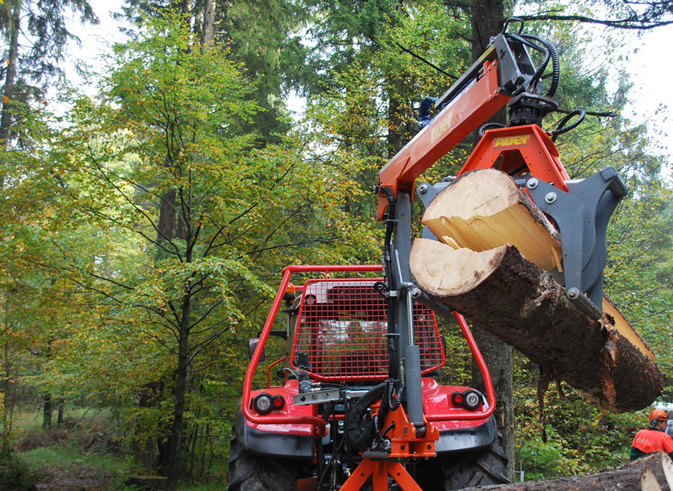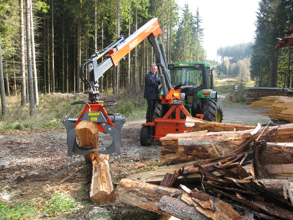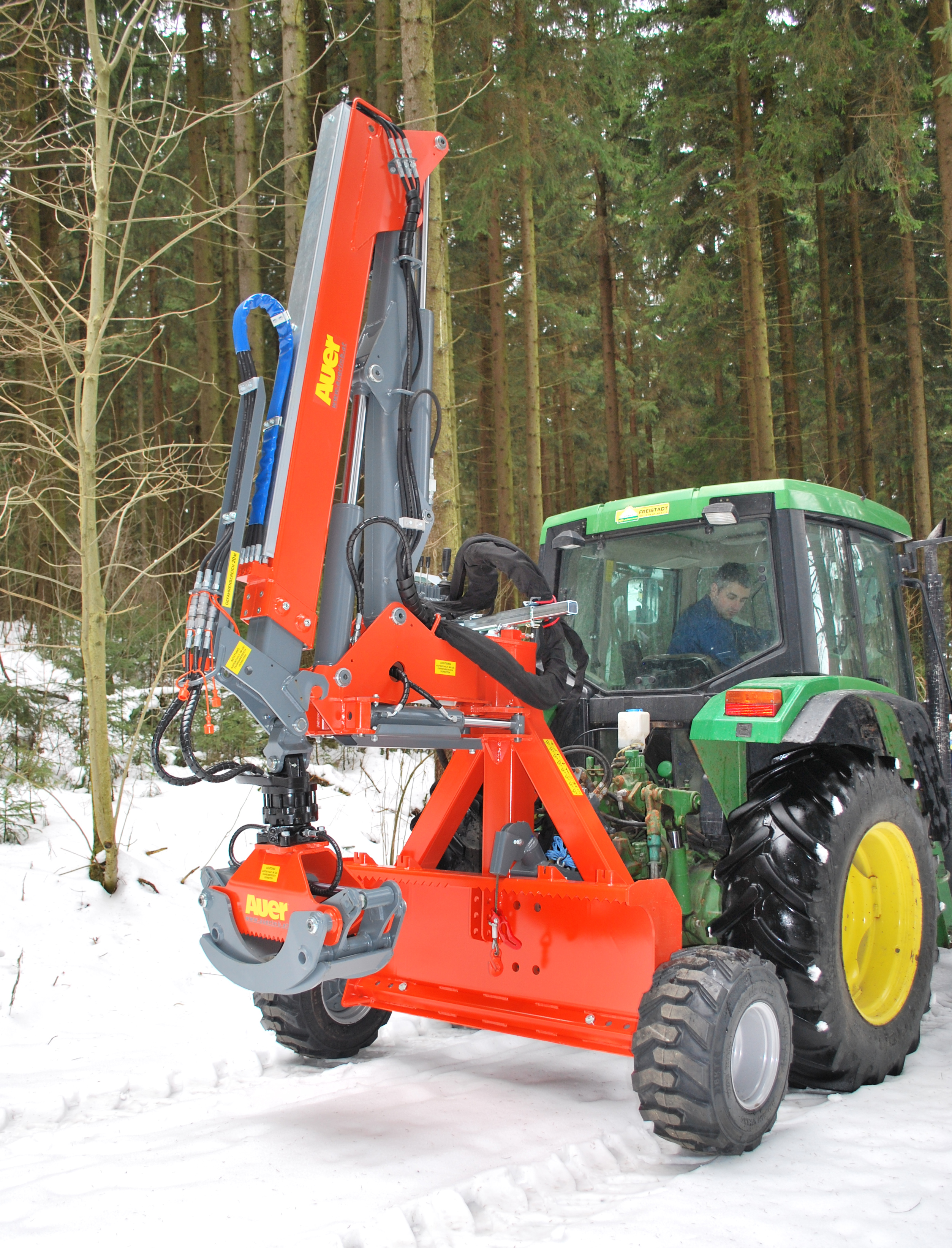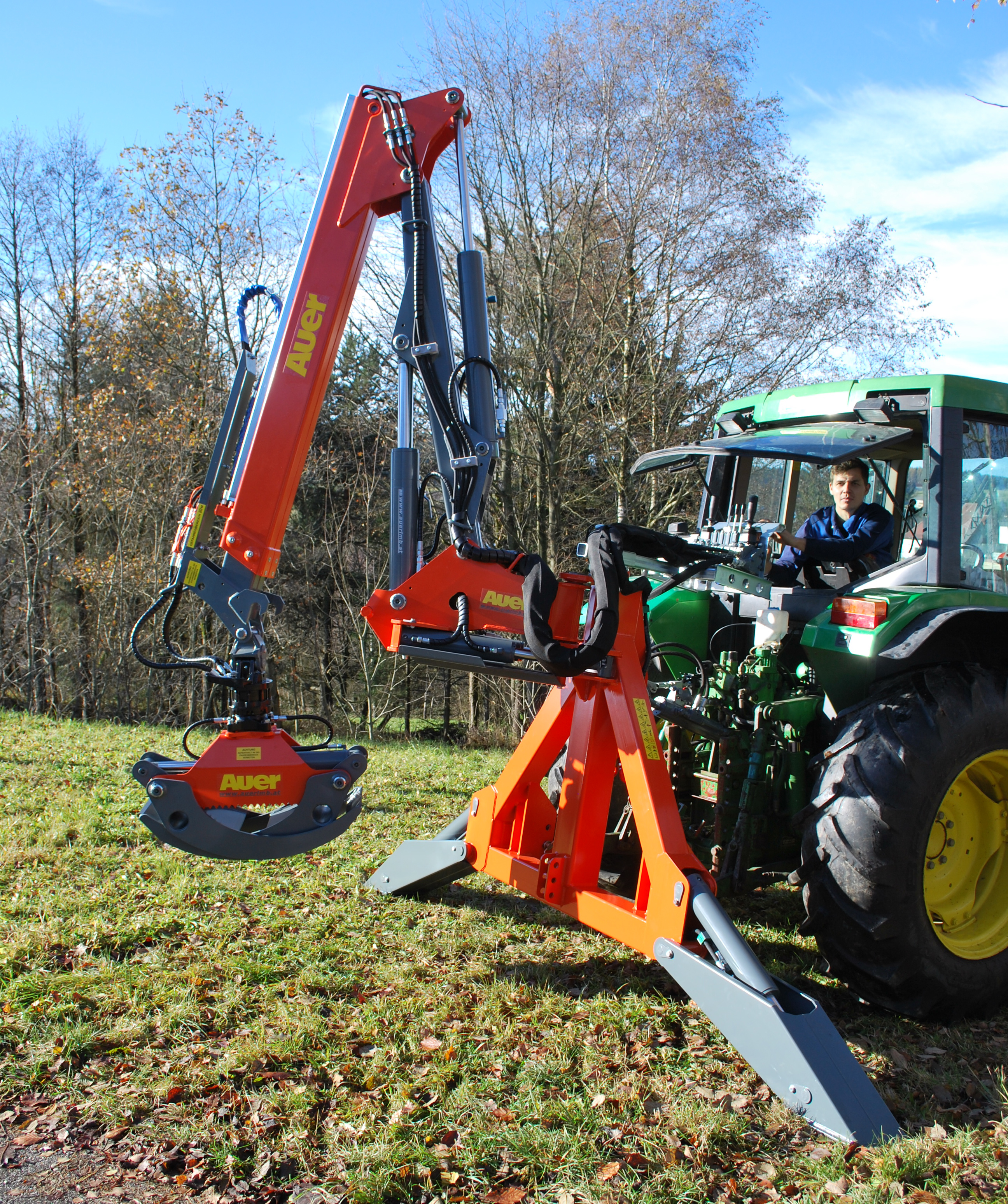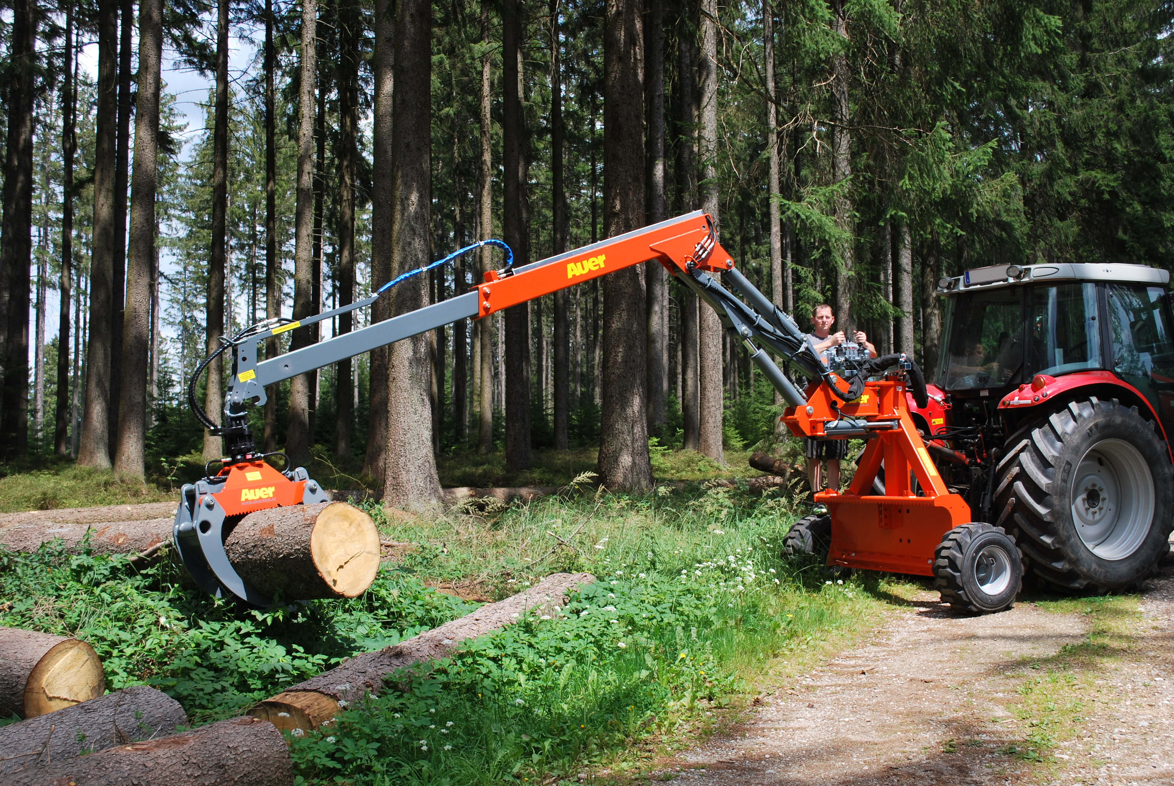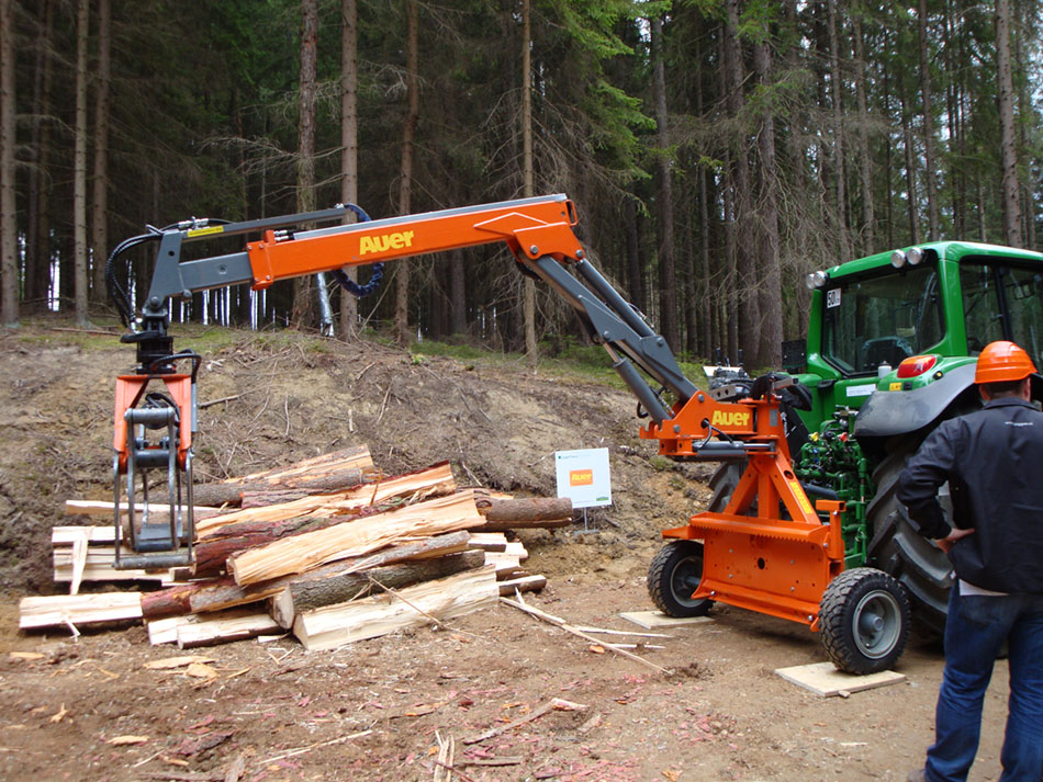 Bei den Modellen TML SKD macht Auers Modulsystem, wenn nötig, aus dem Timberlift mit ein paar Handgriffen einen Bagger oder ein Spaltgerät. Für Arbeiten rund um den Hof lässt sich das System weiters mit Heu- bzw. Mistgreifer ergänzen. Für Traktoren ab 50 PS und etwa ab 3 t Eigengewicht.