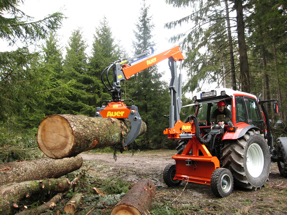 Bei den Modellen TML SKD macht Auers Modulsystem, wenn nötig, aus dem Timberlift mit ein paar Handgriffen einen Bagger oder ein Spaltgerät. Für Arbeiten rund um den Hof lässt sich das System weiters mit Heu- bzw. Mistgreifer ergänzen. Für Traktoren ab 50 PS und etwa ab 3 t Eigengewicht.