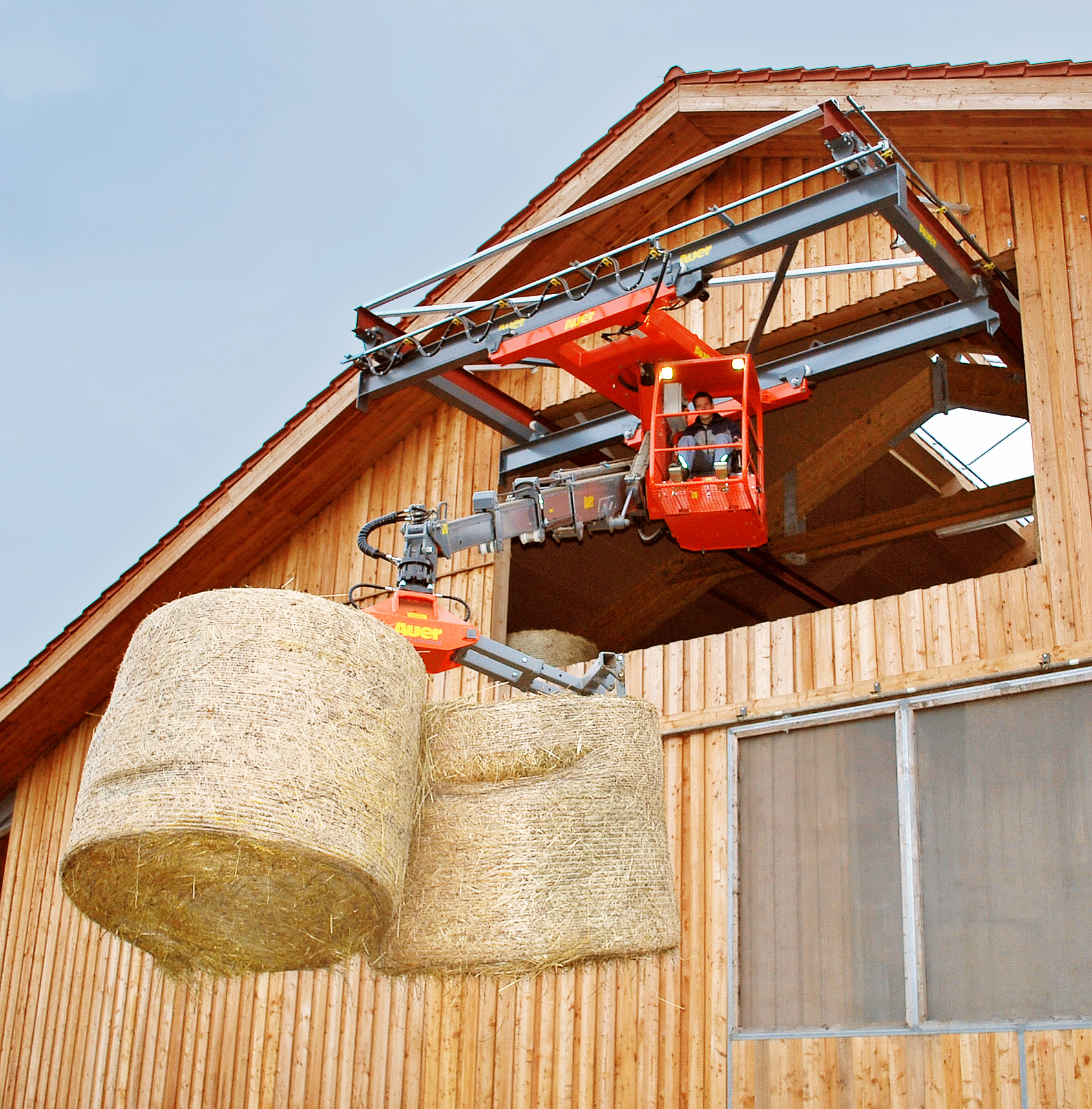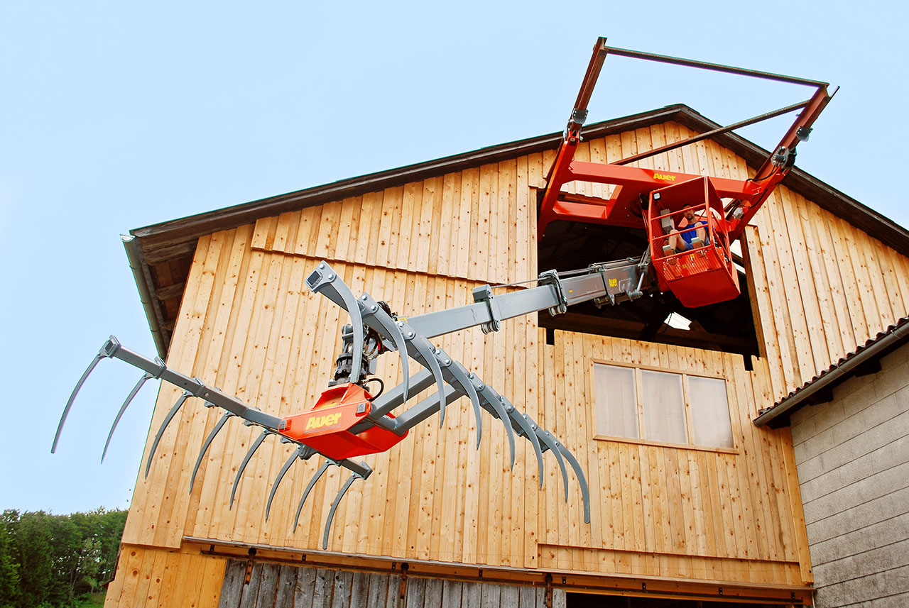 Die Kräne von Auer sind stark, arbeiten schnell und präzise. Hochfester Hochleistungsstahl Strenx 700 macht Auer Heukrane stark und langlebig. Das einzigartige Teleskop-Ausschub-System (keine Seile, sondern millionenfach bewährte Ketten) garantiert mit den synchron laufenden Teleskoparmen höchste Geschwindigkeiten und hilft Geld sparen. Beim Verdichten und zur Entnahme aus dem Silo kann man den Kranarm senkrecht stellen. Kombiniert mit einem Greifer-Hochschwenker lassen sich auch Ballen optimal stapeln. Die Powerjet-Automatik-Schaltung und Segmentbauweise der Steuerblöcke ist wie bei Baumaschinen mit Euro-Steuerung ausgestattet. Sie erlaubt feinfühliges wie auch schnelles Arbeiten. Unverzichtbar sind die Flüsterpumpen und der gehärtete, nahtlos gefertigte Drehkranz.