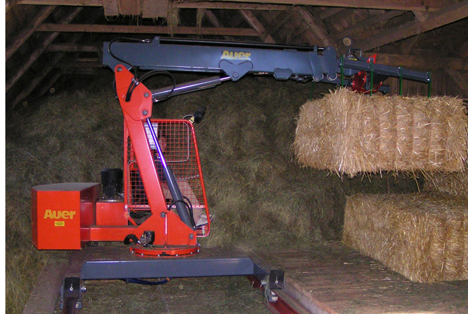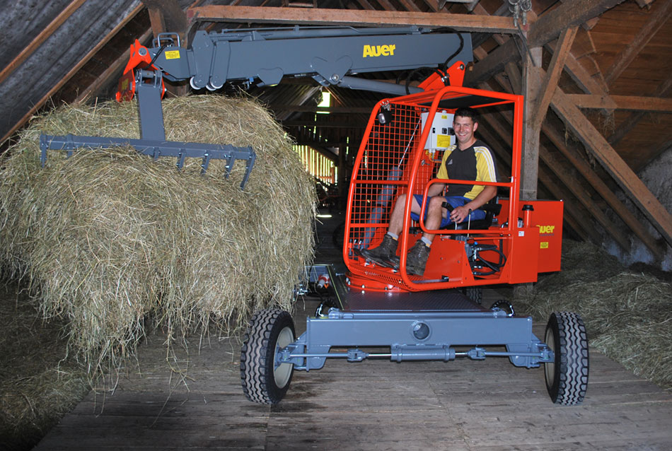 Auer mobile cranes, also known as hay excavators, hay loaders, manure excavators, manure loaders, bale loaders, timber loaders, loaders or universal loaders, are extremely versatile, as indicated by the number of names they are known under. Auer supplies various models, self-propelled with 4 wheels or static with 2 wheels as well as the rail-based version. The small turning circle and compact design enable great manoeuvrability in the tightest of spaces. Moreover the low centre of gravity ensures outstanding stability.
